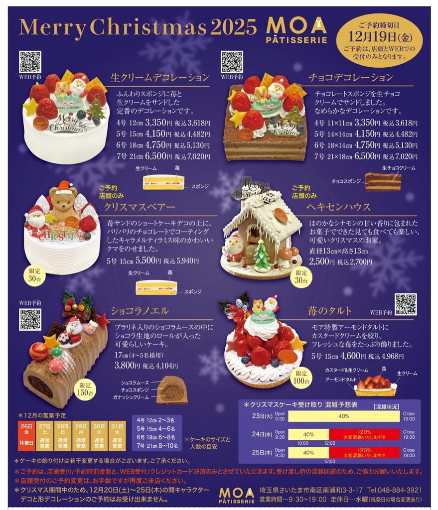 なお、クリスマス期間のため、12月20日(土)~25日(木)の間キャラクターデコレーションと形デコレーションのご予約はお受けできません。